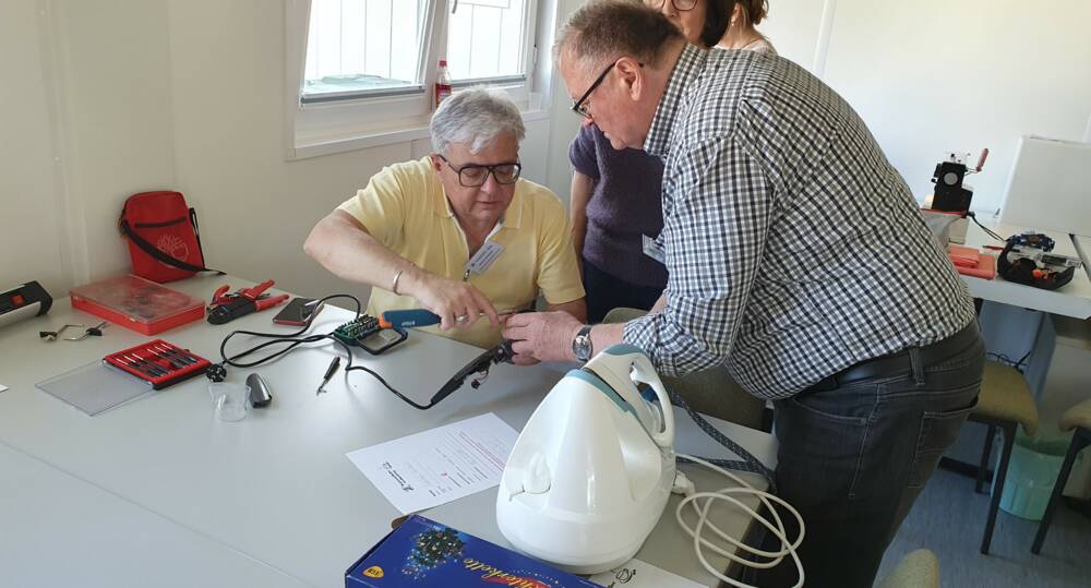 Brentanostraße 2 unterstützen ehrenamtliche Reparateure die Besucher dabei, die