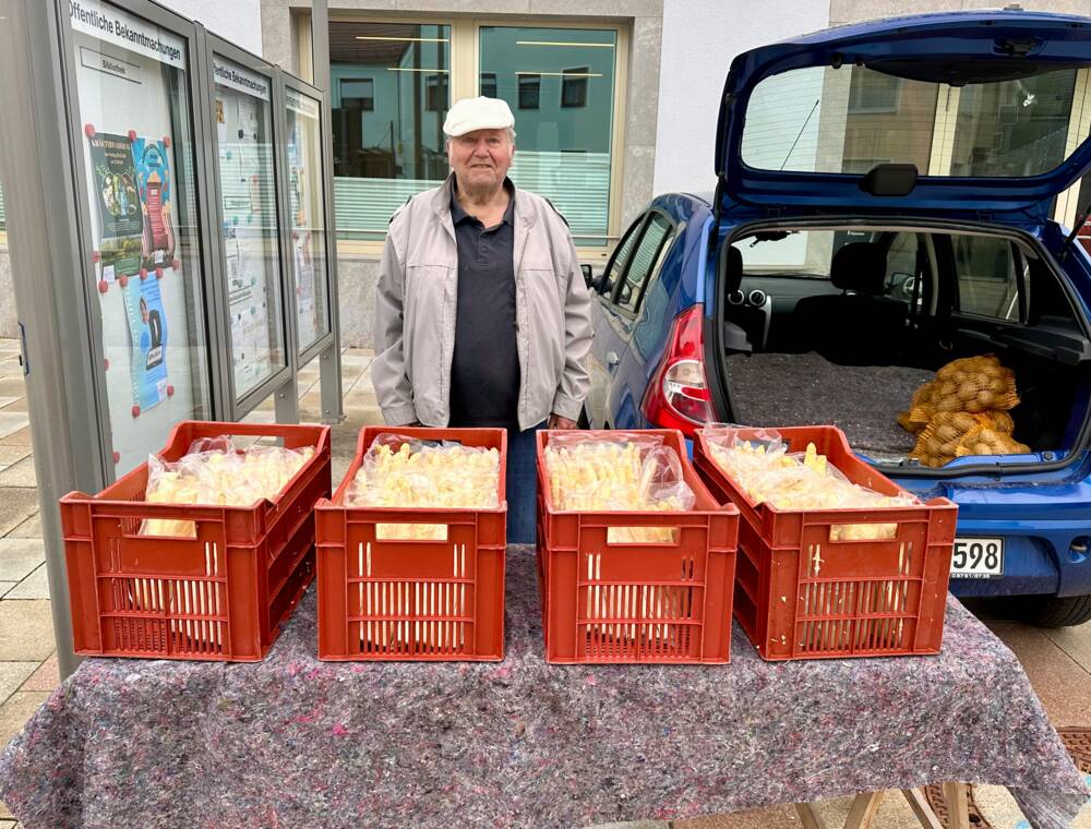Es ist so weit, die Spargelsaison ist eröffnet und Hr. Holzapfel aus Westenhausen verkauft wieder jeden Samstag frischen Spargel.